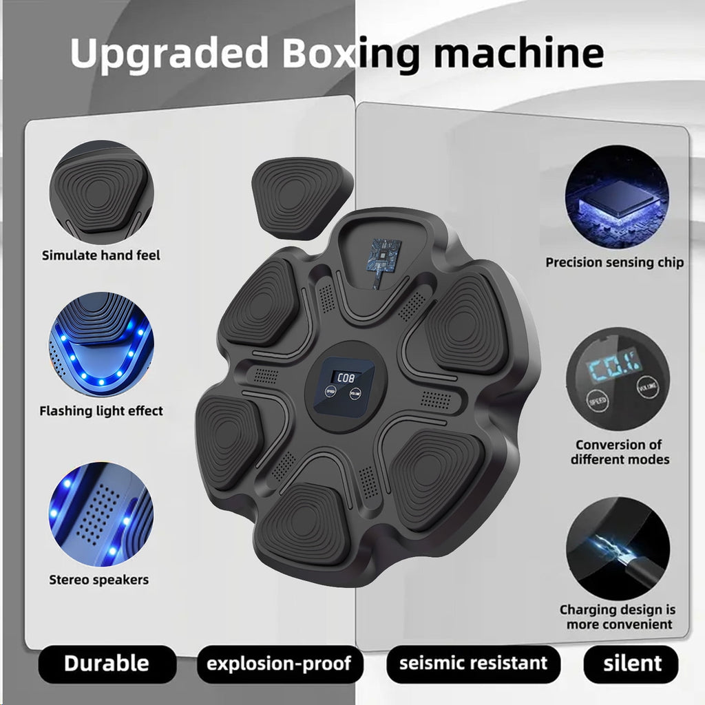 - Smart Music Boxing Machine: The music boxing machine support connection and features an in-built speaker to play your preferred music via connection. Practice boxing while following the rhythm, relieve stress and make your workout dynamic and energizing.